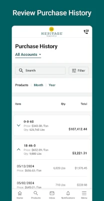 Account information Easily look up all your Heritage Cooperative account information. Find all your previous purchases or view and pay your invoices in a few clicks.