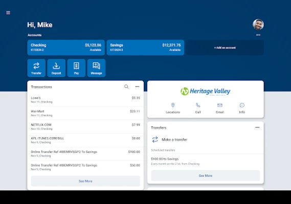 Here’s what else you can do with Heritage Valley Mobile Banking: